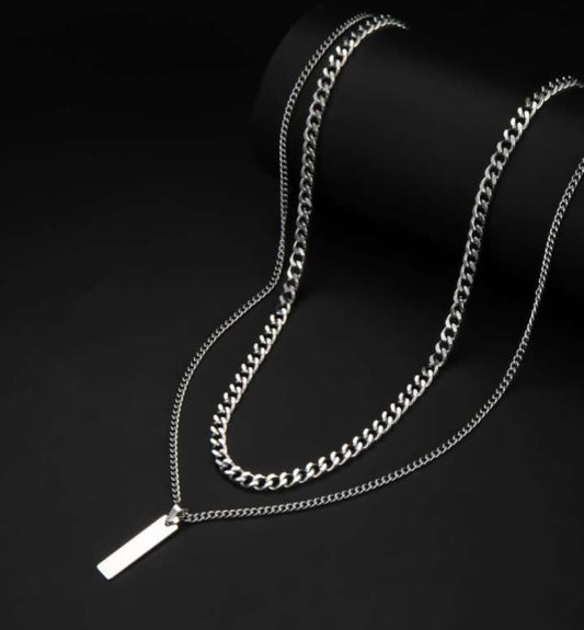 Collier Double Chaîne à pendentif rectangle