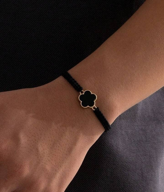 Bracelet à Médaillon Trèfle (noir) - Porte-bonheur Élégant